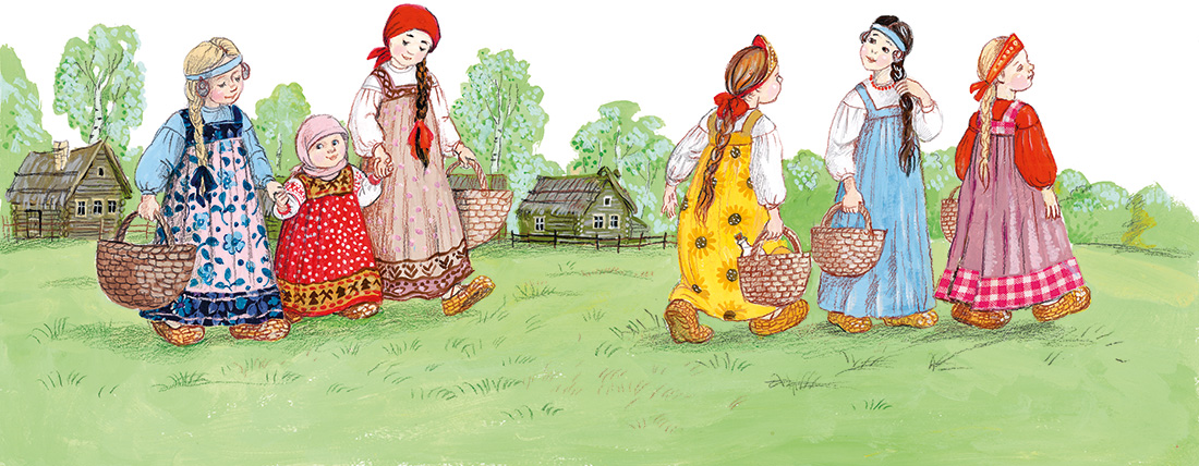 Пришло лето, стали ягоды поспевать, вот и зовут подружки Снегурочку в лес по ягодки. Старики и слышать не хотят, не пускают. Стали девочки обещать, что Снегурочки они из рук не выпустят, да и Снегурочка сама просится ягодок побрать да на лес посмотреть. Отпустили её старики, дали кузовок да пирожка кусок.