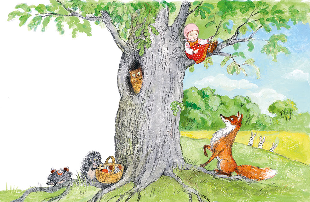 Стала лиса вокруг дерева обхаживать, на девочку Снегурочку поглядывать, с дерева её сманивать, а девочка не идёт.