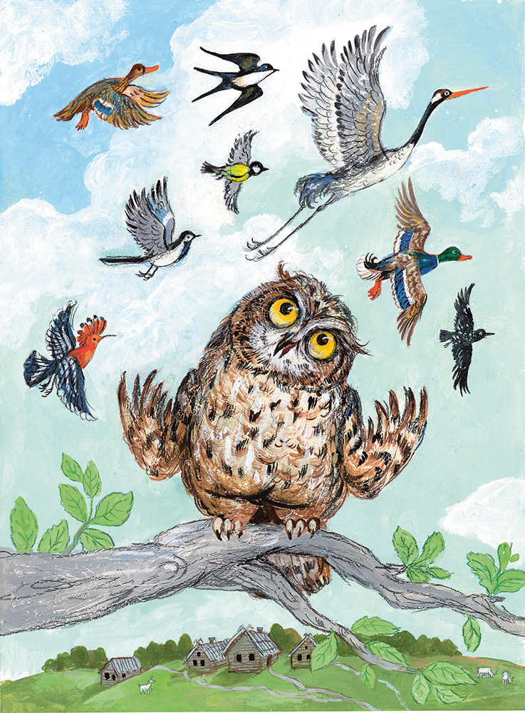 Потянулась из-за моря перелётная птица: гуси да лебеди, журавли да цапли, кулики да утки, певчие пташки и хвастунья-синичка. Все слетелись к нам на Русь гнёзда вить, семьями жить. Вот разошлись они по своим краям: по степям, по лесам, по болотам, по ручьям.