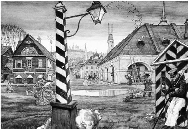 Как и в «Жизни человека», этапы жизненного пути отмечаются передвижениями в пространстве. В «Жизни человека» они отмечались перемещением героя из здания в здание, от одного конца Невского проспекта в другой и обратно. В «Вакхе» перемещение героя не столь строго ориентировано в пространстве: здесь пространственные вехи перемежаются с социальными ориентирами, например: «От сотворения моего и до барской прихожей» (1-я глава), «От барской прихожей до француза с отмороженными ногами» (2-я глава). На этом фоне название главы «От метлы с фонарем и до самого полковника и дальше…», которое так не устроило Тургенева, не содержит в себе ничего особенного, хотя, в известной мере, Тургенев, конечно, прав: такие заголовки сильно отдают булгаринщиной, дешевой игрой с читателем с целью привлечь его внимание, и поэтому они лишены подлинного юмора. Но если рассматривать эти заголовки как обозначение вех в жизни героя, то все становится на свои места. «Метла с фонарем» – это только с первого взгляда смешно по-булгарински. На самом-то деле это должно быть осмыслено читателем и должно стать ему смешным по-гоголевски: ведь и у Гоголя в «Невском проспекте» героя заменяла вещь, откуда и рождалась идея обманчивости Невского проспекта.