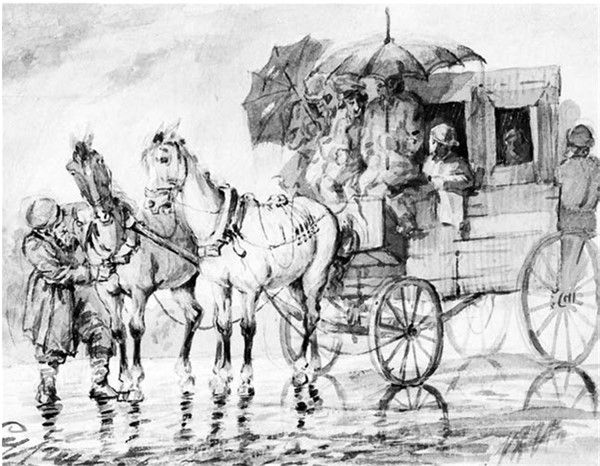 В. Суриков. Под дождем в дилижансе. 1871
