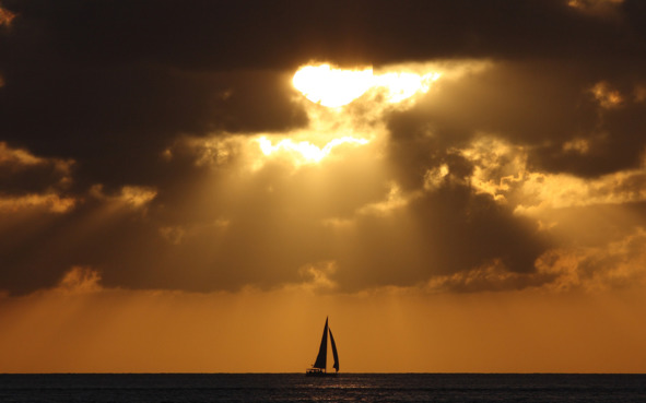И снова был желтый закат. И снова, как это было каждый вечер, по горизонту плыл катамаран, но только сегодня он поднял парус. В катамаране сидели туристы. Это было романтично, но дорого.