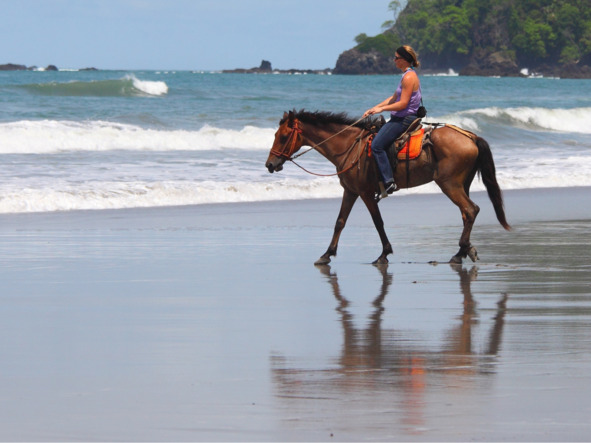Тропа выходит к небольшой, почти круглой, бухте с желтым песчаным пляжем. Мне видится огромный парусный корабль на якоре, плывущие к берегу шлюпки и веселые парни с саблями и тяжелыми пистолетами на боках. Я встряхиваю головой, парни с пистолетами исчезают и появляется группа русских туристов, с воплями несущихся в серо-зеленую воду бухты. По берегу на красивой лошади едет девушка и улыбается.
