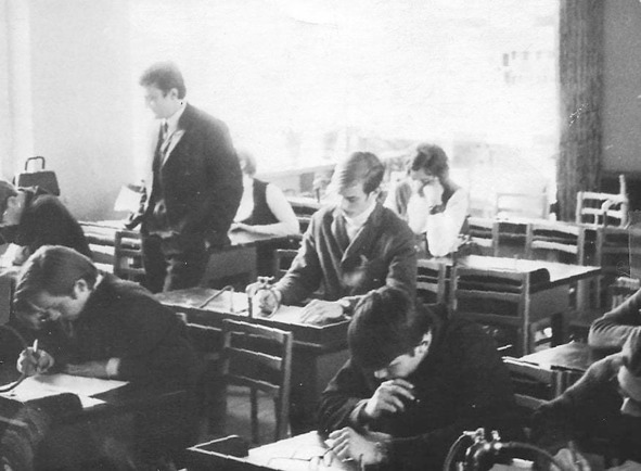 На фото автор проводит олимпиаду по физике среди школьников. Было время, когда физика была в моде и значок МФТИ, нацепленный на лацкан пиджака, вызывал уважение. Автор на фото в костюме и даже в галстуке. Редчайший случай. «Оденься поприличнее, не позорь науку», – сказали в оргкомитете олимпиады. Вот я и не позорил, старался, как мог.
