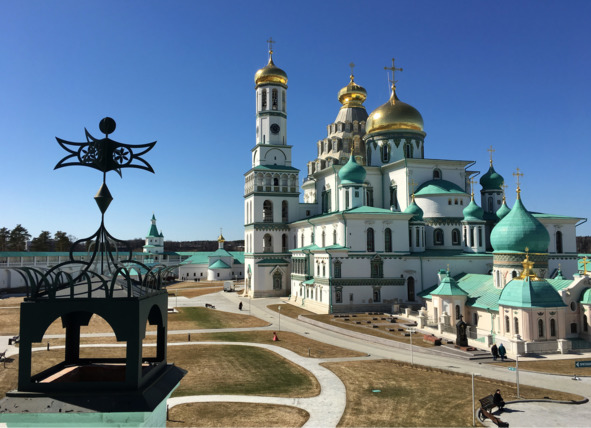 С Капитаном приехали в Новый Иерусалим. Тут все красивее, чем в старом. Красоту охраняют мальчики в темных костюмах. Стены монастыря покрашены в праздничный белый цвет. Мы с капитаном спрашиваем у Сергея – скульптора, который участвовал в конкурсе на реставрацию Воскресенского собора: