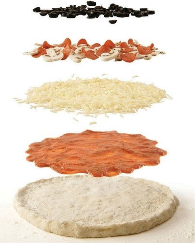 В приготовлении пиццы нет большого искусства. Именно правильная, выверенная комбинация топпингов, и последовательность их нанесения на пиццу, означает достижение правильного баланса. Ведь отличная пицца не означает большое количество топпингов. Скорее, пицца состоит из баланса правильно подобранного количества теста (корочки парбейк), пицца-соусом, сыра, специй и топпингов, таким образом, чтобы вкус всей пиццы являлся смесью всех компонентов. При этом вкус топпингов не должен перекрывать или затмевать вкус соуса, сыра и теста. Однако это наше мнение. Некоторым людям нравится небольшое количество топпингов на пицце, другим же подавай тонны топпингов, плавающих на пицце. Вы должны сами определиться, то есть, выбрать то, что вас устраивает. Конечно, у каждого своя идея того, что такое искусство. Хорошо, покажите, проявите себя! Вы можете наносить много или мало топпингов, сколько хотите. Изменение числа и/или количества каждого топпинга – это, возможно, самый лёгкий способ поставить свой штамп на чью-то рецептуру пиццы (4).