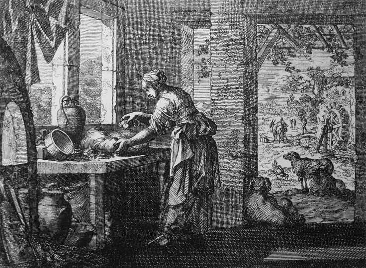 An etching by Jan Luyken illustrating Matthew 13:30–34 in the Bowyer Bible, Bolton, England.