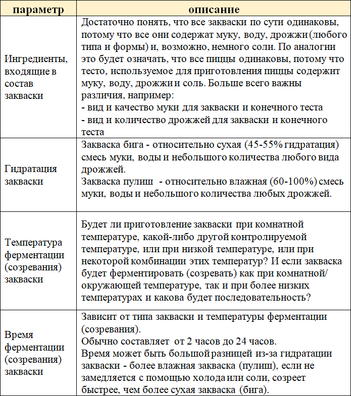 Какие параметры больше всего важны для приготовления закваски и конечного теста на основе выбранной закваски?