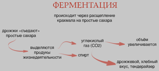 Применение закваски приводит к тому, что увеличивается время ферментации. Дрожжи и природные ферменты, присутствующие в муке получают достаточное время для расщепления крахмала и образованию большого количества простых сахаров, являющихся субстратом для ферментов дрожжей. Кроме того, оказывается воздействие на группу водонерастворимых белков и образовывается глютеновая сеть. Это процесс имеет два отличительных преимущества: