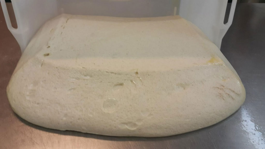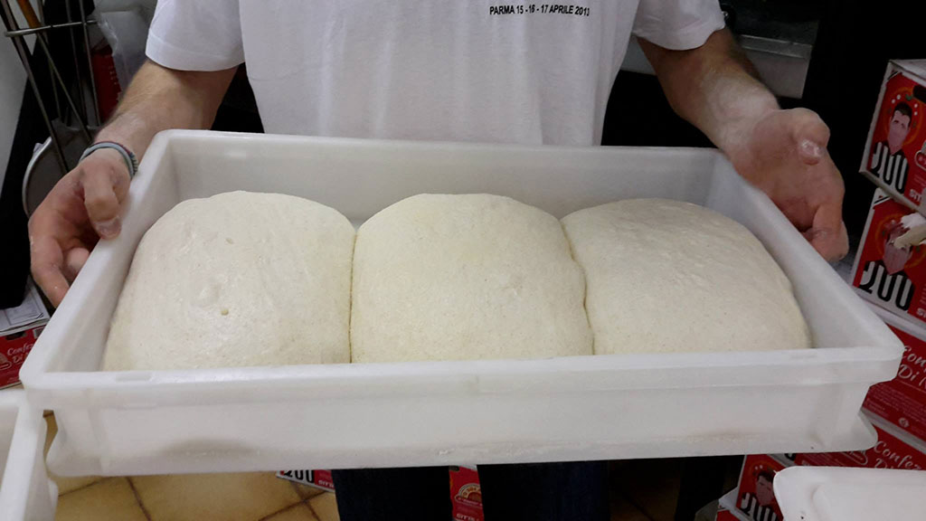 3. Медленное созревание (минимум 24 часа, лучше 48–72–96 часов) при температуре 2°С-4°С. Эта температура и это время гарантируют, что ферменты, выработанные в процессе разрыхления теста для пиццетты, расщепляют сахара и аминокислоты, способствуя завершению всех биохимических процессов. Когда тесто для пиццетты оставлено созревать в течение длительного периода, то корочка парбейк, а за ней и сама пиццетта, выпеченная в печи или в домашней духовой печи, будет легким и свежим, как в пиццерии, поэтому у желудка не будет проблем с перевариванием. Ведь сработали такие ферменты как амилазы и протеазы. Они уже расщепили сложные и простые сахара и нашему телу не нужно будет этого делать.