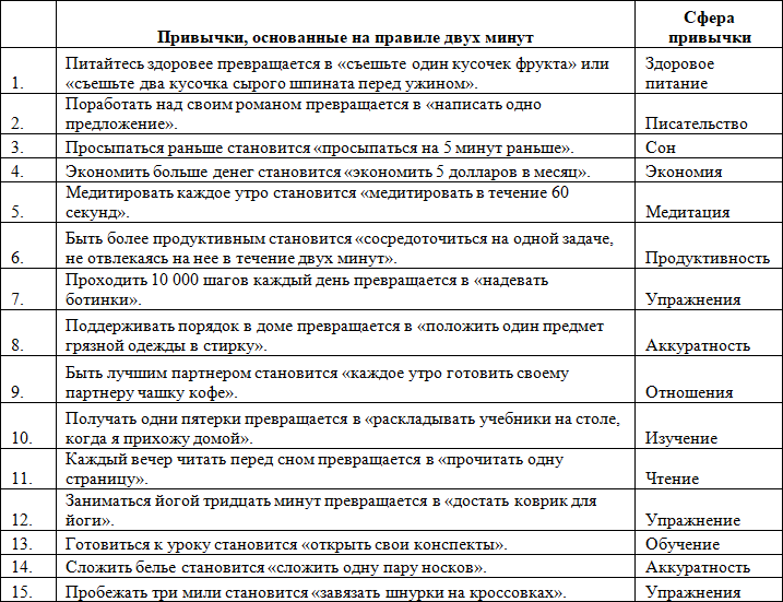 «Когда вы начинаете новую привычку, ее выполнение должно занимать менее двух минут».