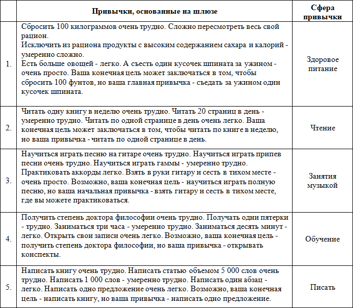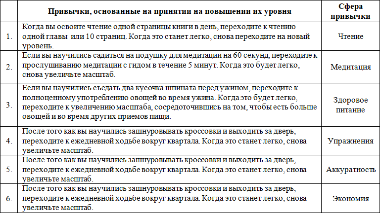 «Это переход от текущей привычки на уровень выше. По сути, повышение привычки – это увеличение средней скорости. Вот некоторые примеров: