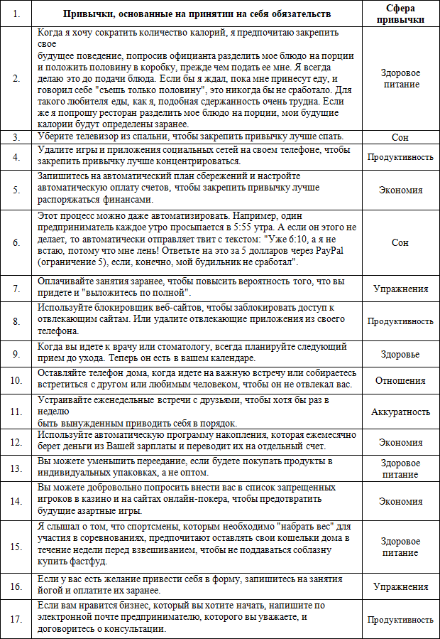 Принятие на себя обязательств – это способ зафиксировать себя на желаемом поведении, которое мы, возможно, не хотим выполнять, но знаем, что это в наших интересах. Принятие на себя обязательств имеют две важные особенности: