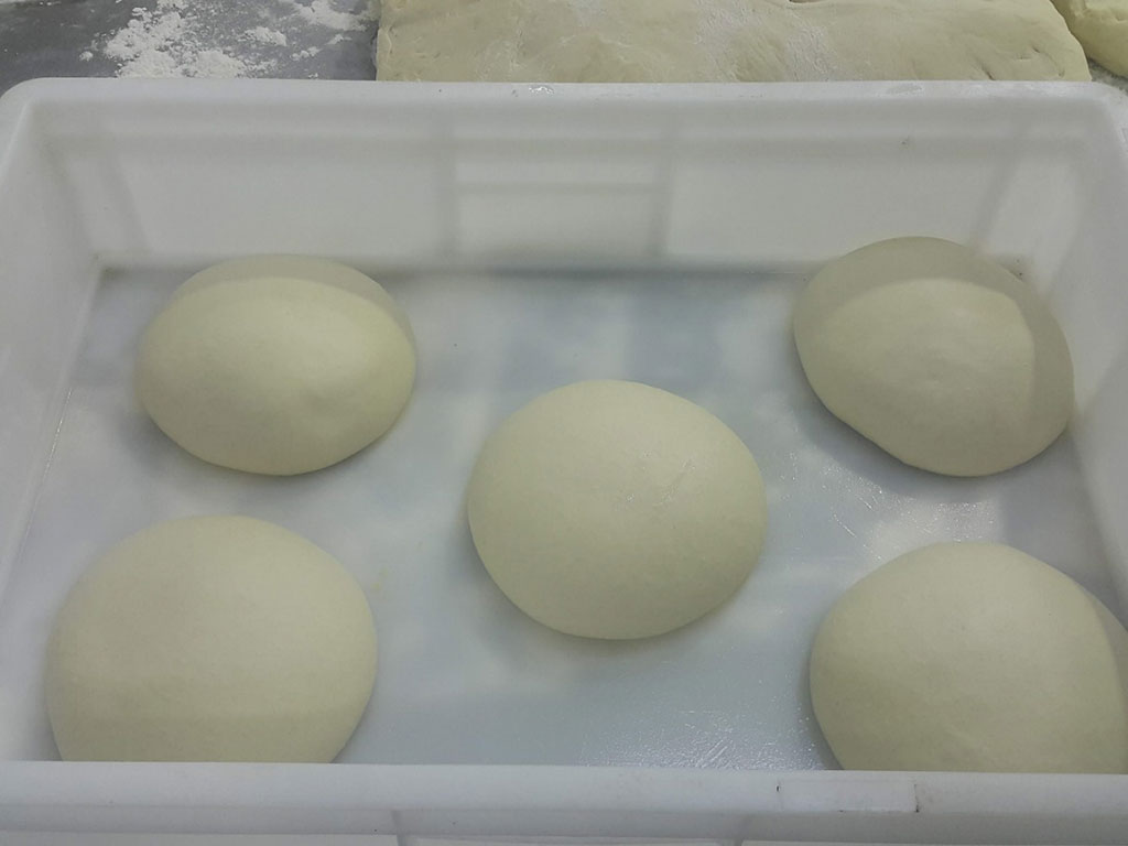 8. Когда шары теста сформированы, они переносятся в пластиковый лоток для теста. Укладывание шаров должно производиться так, чтобы каждый шар теста при своем росте (брожении, ферментации, созревании) и последующем согревании не касалось других шаров, а также стенок пластикового лотка. За это время каждый шар теста должен увеличиться в диаметре (и объеме) в 2–2,5 раза.