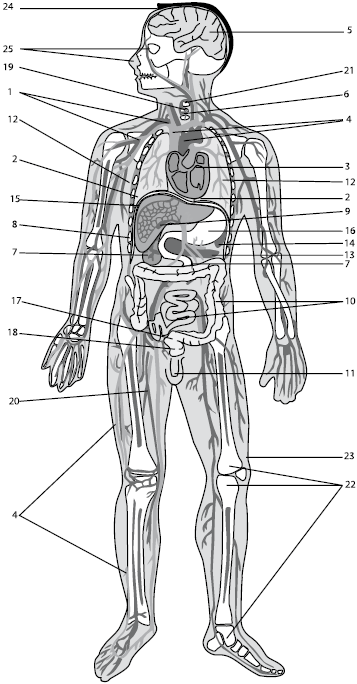 I этап: 1 – кровь (повышение энергетики клеток); 2 – легкие; 3 – сердце; 4 – сосуды; 5 – головной мозг; 6 – щитовидная железа; 7 – почки; 8 – надпочечники. II этап: 9 – желудок; 10 – кишечник; 11 – матка, яичники, яички; 12 – молочные железы. III этап: 13 – поджелудочная железа; 14 – селезенка; 15 – печень; 16 – желчный пузырь; 17 – мочевой пузырь; 18 – предстательная железа; 19 – спинной мозг; 20 – периферические нервы; 21 – позвоночник; 22 – суставы; 23 – кожа; 24 – волосы; 25 – органы чувств