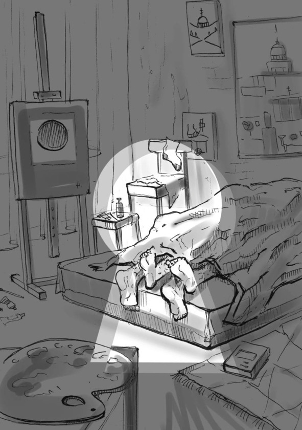 Чёрт, ну и холод! Макс ненавидит работать в тепле. От побеленных кирпичных стен веет тоской. Днём студия – отвратительное место. На белых холстах огромные чёрные мазки. Свалка коробок и поролоновых лент. Студия перед выставкой превращается в склад. Двуспальный матрас с двумя пидарасами – вишенка на мерзком торте.