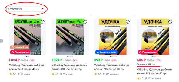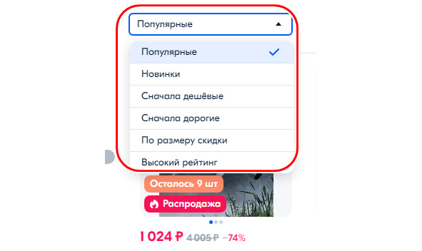 3. Установите другие, интересующие вас фильтры, из списка взамен «Популярные»: Новинки, Сначала дешевые…