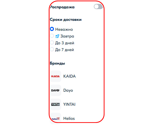 4. В левом меню можно установить фильтры «Распродажа», «Марка», «Товары Premium», а также установить дополнительные данные удилища или сменить те, что были указаны вами в запросе: категория, срок доставки, бренд, длина, тест, вид, конструкция удилища, цена, строй и т. д. После этого продолжить знакомство с выбранными вами удилищами.
