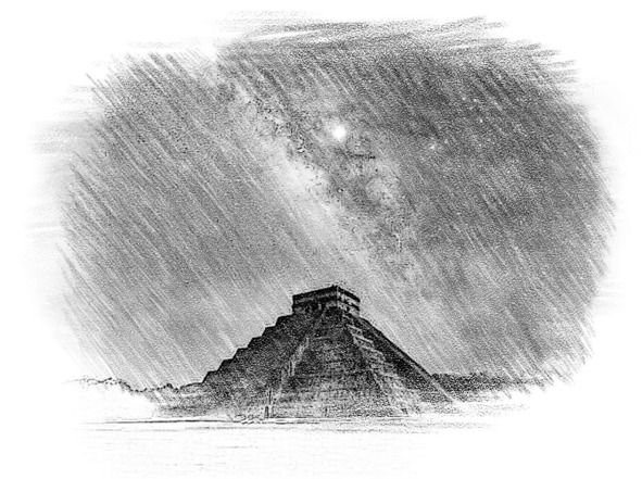 Они назначили точку сбора на вершине заросшего холма с развалинами церкви у слияния трёх рек, назвав его Горой Всех святых, и разделились для ускорения поиска. Дионису достался север, а Снегия отправилась на юг от экватора. «Как же она решительно красива!», – пронеслось в голове Дио. Он злился на себя за то, что так бесславно опростоволосился. Мысли на эмоциях ускоряются, и ему всплыли образы виденных когда-то пирамид и сибирских кедров, излучающих безумной мощности информационные потоки. Кедровых лесов и плантаций ими не обнаружено. «Искать пирамиды, вот что!», – он стремительно, как мог, сканировал ландшафты. Горные разрезы, холмы, искусственные объекты, лесные массивы – ничего не ускользало от его внимания. Дионис нашёл несколько замаскированных техногенных устройств и строений, большие скопления костей прямоходящих существ в двух высотных пещерах, водяную мельницу с жерновами, оросительные системы, каменные водостоки и канализацию. Пирамиды не встречались.