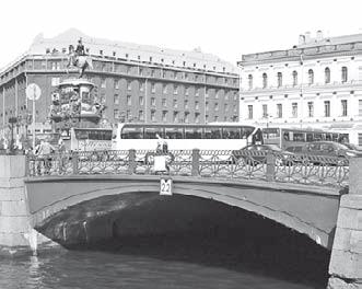 С Синего моста взору экскурсантов предстает Исаакиевская площадь, одна из самых красивых в городе. Мост – лишь небольшая часть площади. Прогулочные катера проплывают под его сводами в своеобразном тоннеле, длина которого 99,9 м. В конце XX в. в Санкт-Петербурге насчитывалось 539 мостов, в том числе в центре города – 315.