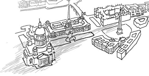 В центре оживленной площади у Троицкого моста стоит скульптура странного воина, в котором зрители должны разглядеть Александра Васильевича Суворова (1730–1800). Если можно так изображать Суворова, то почему нельзя изображать Петра I так, как это сделал М. Шемякин в скульптуре, расположенной в Петропавловской крепости? Зато Суворов, безусловно, стоит в правильном месте, так как за ним располагается Марсово поле, которое до 1917 г. служило местом проведения военных парадов. После захоронения на Марсовом поле жертв Февральской революции и других борцов за дело революции Марсово поле стало мемориальным комплексом. Здесь горит Вечный огонь, а на мощных стелах выбиты торжественные слова в память о погибших героях, написанные первым советским народным комиссаром просвещения Анатолием Васильевичем Луначарским.