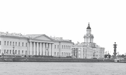 Необычный вид имеет здание Кунсткамеры – первого российского музея, открытого Петром I в 1714 г. Во время «великого посольства» в Европу в 1697–1698 гг. молодой царь занимался своеобразным «шопингом». Он скупал целые коллекции редкостей, чудес, «кунштов». Так была создана основа для первого российского естественно-научного музея – Куншткамеры, которая из Летнего дворца переехала в отдельное помещение. Здание «палат» в стиле петровского барокко строили в 1718–1734 гг. Маттарнови, Гербель, Киавери и Земцов. Два трехэтажных корпуса соединены многоярусной башней со сложным купольным завершением. Фактически это был филиал Академии наук. Здесь читались лекции, находились Анатомический театр, Готторпский глобус и Большая академическая обсерватория. Здесь работал М. В. Ломоносов. Впоследствии на базе Кунсткамеры были созданы Зоологический, Этнографический, Ботанический, Минералогический музеи.