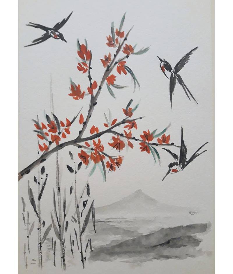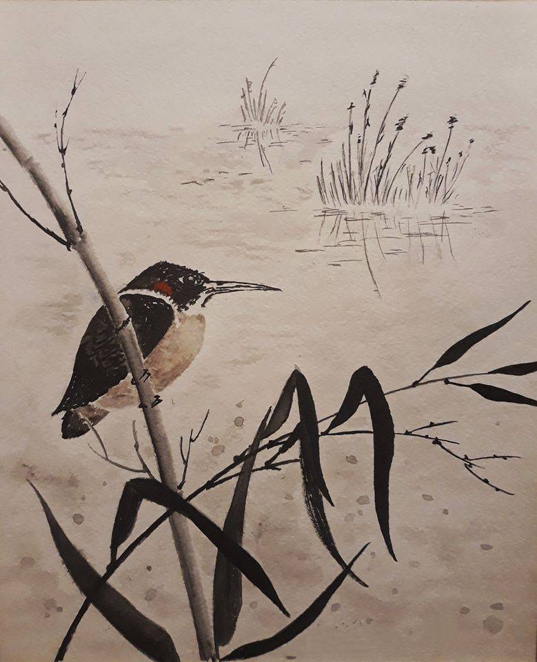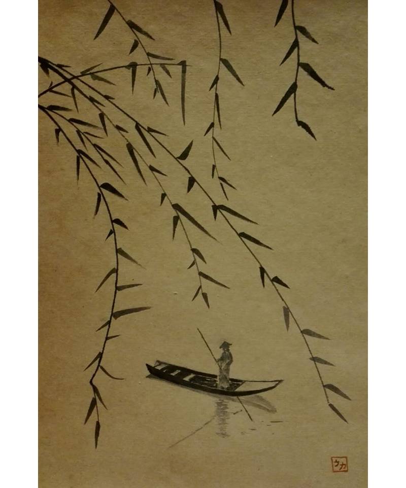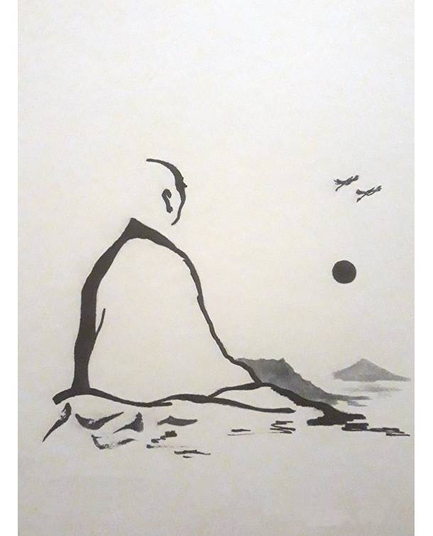 «Школа чань возникла в Китае в VI в., и ее принципы почти сразу нашли отражение в живописи. Приверженцам учения удалось, казалось бы, невозможное – запечатлеть мир в движении, передать саму его переменчивую суть. Они творили стремительно, за считанные минуты создавая шедевры, где черная тушь играет всеми возможными цветами, а лаконичные линии хранят в себе истину текучих форм. Особая роль принадлежит пустоте, которая становится самодостаточным изобразительным элементом. Через живопись чаньские монахи стремились передать идею прозрения, приходящего моментально, подобно вспышке молнии. Это состояние передается от сердца к сердцу, вне какой-либо отвлеченно-умозрительной доктрины – таков основной постулат школы.