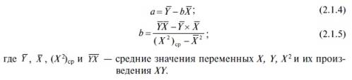 Поскольку Yрасч. =a +bX (где а – свободный член уравнения регрессии, а b – коэффициент регрессии), то уравнение (2.1) примет следующий вид (2.1.1):