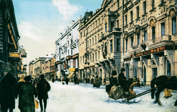 На Тверской, против Леонтьевского переулка, высится здание бывшего булочника Филиппова, который его перестроил в конце столетия из длинного двухэтажного дома, принадлежавшего его отцу, популярному в Москве благодаря своим калачам и сайкам.