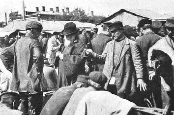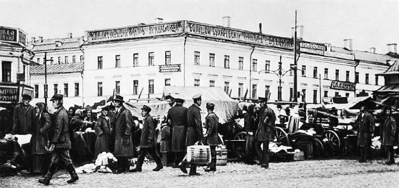 «Медленно раскачивается Сухаревка, входит в раж, пьянеет от выкриков, от хлыстовского ритуала купли-продажи. Уже кидает человека из стороны в сторону, только выбрался он из одной ручной толкучки, преследуем сомнительными двуногими лавками, как понесло его одним из порожистых, говорливых ручейков и прибило к тупику – и, оглушенный граммофонами, он уже шагает через горящие примусы, через рассыпанный на земле скобяной товар, через книги».