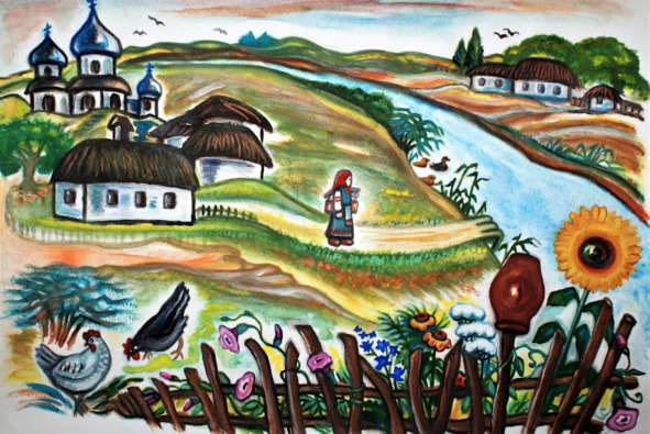 Once on such a Sunday a local craftsman Nazar was about to go to the bazaar. He and his wife Galina and two daughters, Ulyana and Vasilisa, eight and six years old, lived on the outskirts of the village, in a hut standing alone on the slope of a high hill. They had no special wealth: a small piece of land, a horse, chickens, and goats.