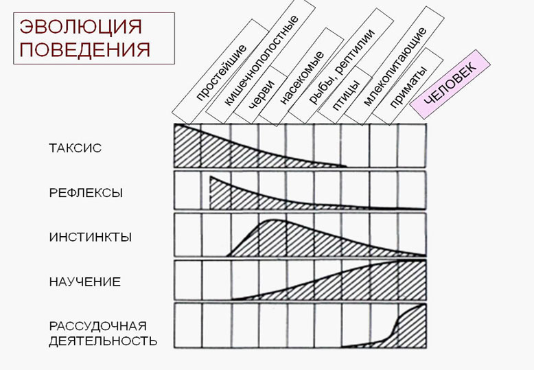 – на основе инстинкта происходит обучение, формирование индивидуального поведения и другое;