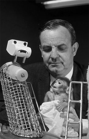 Харлоу с одной из своих обезьянок и суррогатной матерью