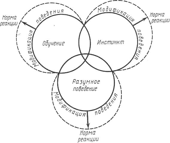 В след за Дарвиным, Л. В. Крушинский (2009) считал, что при изучении поведения можно выделить «три основных элементарных типа поведенческих актов (Рис. 1):