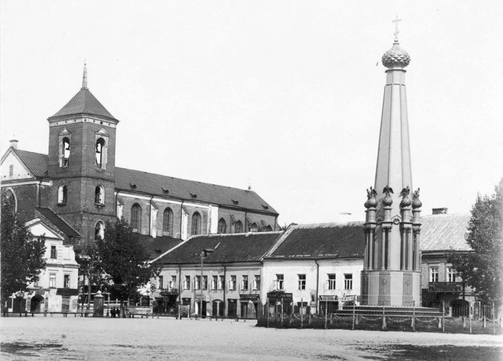 На площади, напротив ратуши, по указанию царя Николая I в 1840 году был установлен чугунный монумент в честь героев войны 1812 года. Таких монументов, для установки в местах важных сражений, было задумано 16, но сначала установили три: в Бородине, в Смоленске и здесь – в Ковне. Затем они появились в Полоцке, Малоярославце, Красном и Клястицах. Для установки остальных девяти в казне не хватило средств. Первым из семи памятников пострадал Ковенский. В 1915 году, когда германцы оккупировали город, они демонтировали монумент и отправили его на переплавку. Все остальные монументы были снесены уже Советской властью в начале тридцатых годов. Каким-то чудом сохранился только один – в Смоленске.