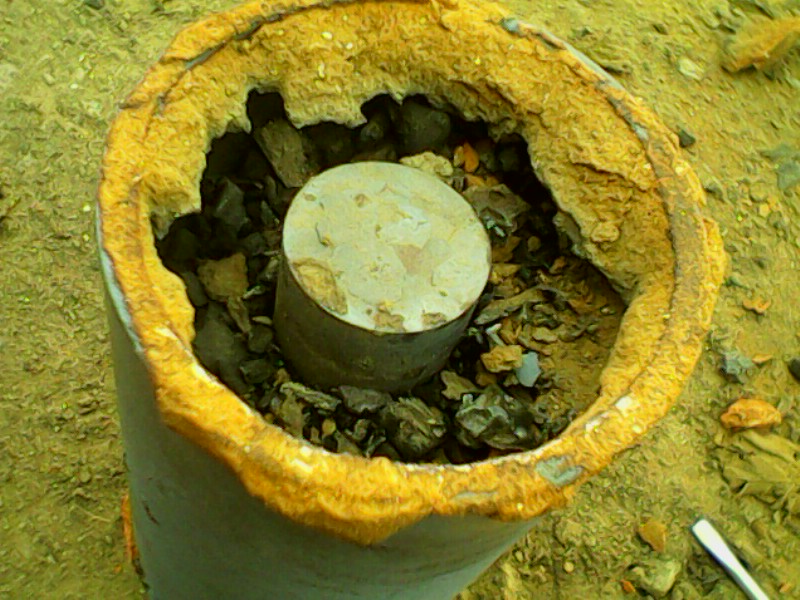 – На него устанавливаются втулки, которые затем полностью засыпаются карбюризатором.