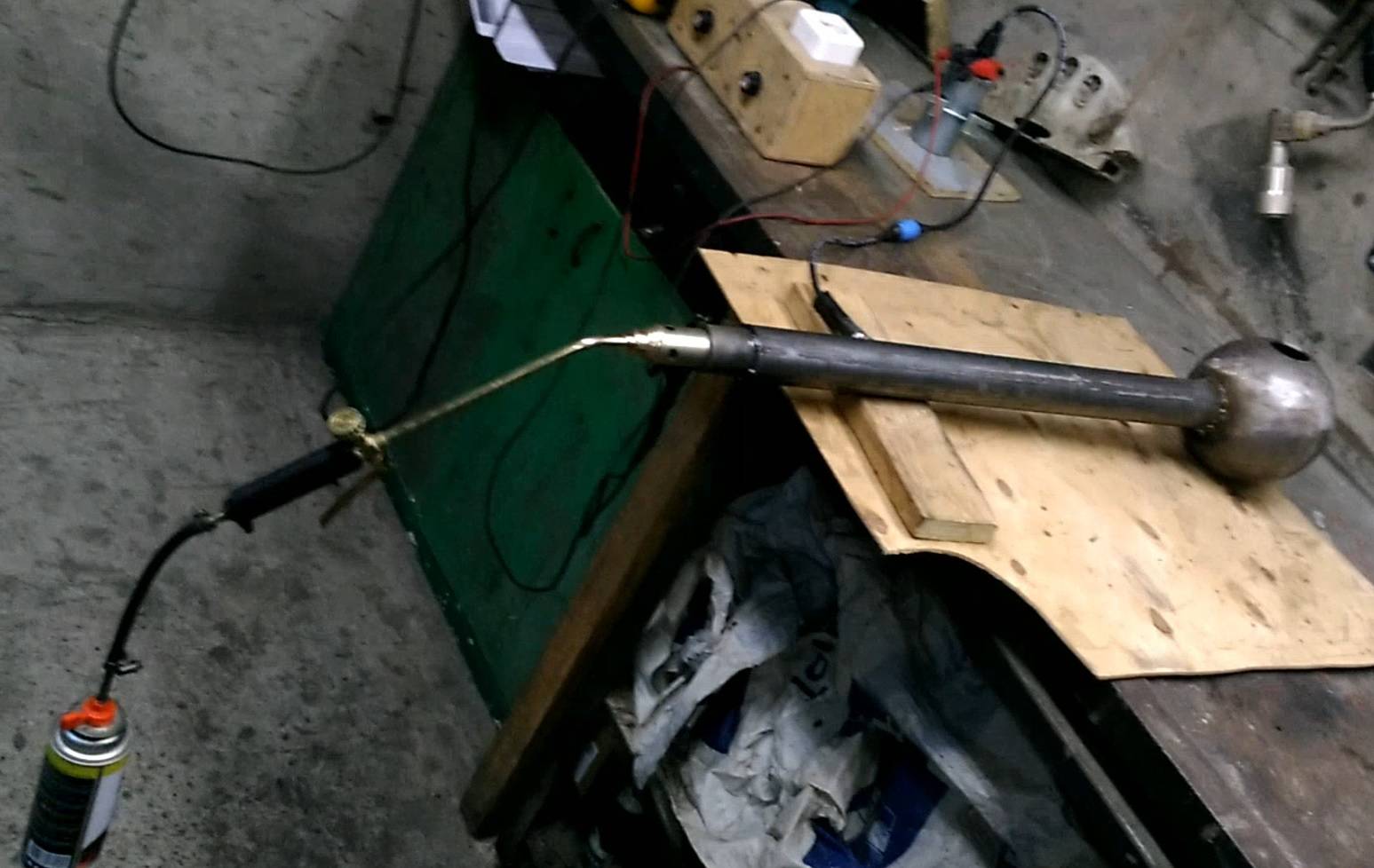 Рис. № 3. Прототип вихревой пушки с сферическим резонатором диаметром 0,15 м.