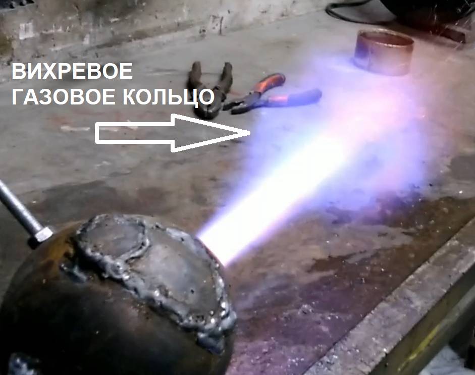 Вихре кольцевая газовая пушка представляет собой полузамкнутый патрубок детонационного горения топливовоздушной смеси со сферическим резонатором на выходе.