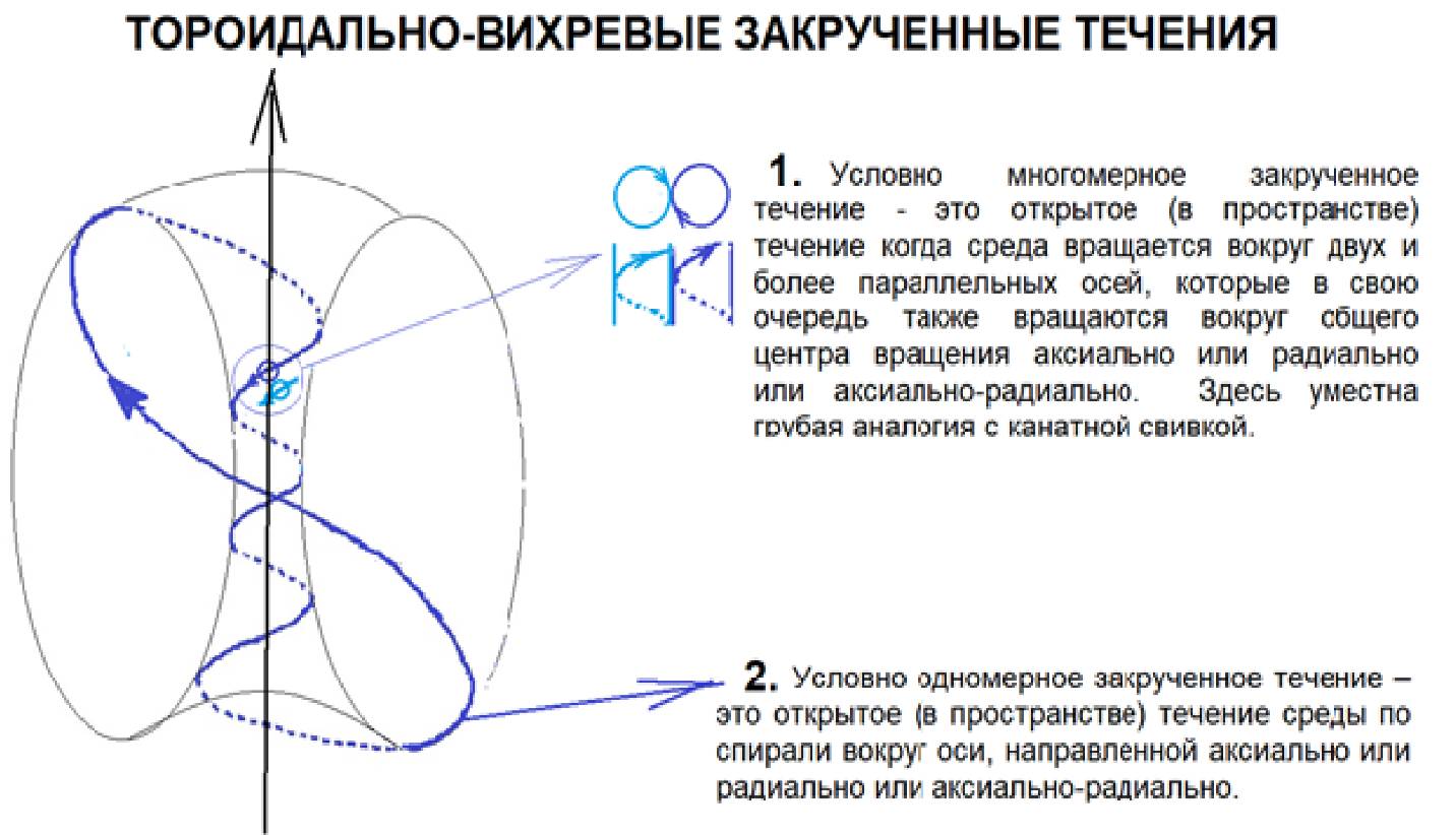 Рис. № 1. Тороидально-вихревые закрученные течения.