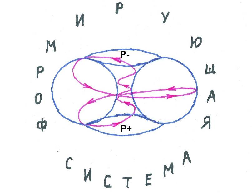 Рис. № 3. Система находится с одной стороны снаружи вихревого тороида.