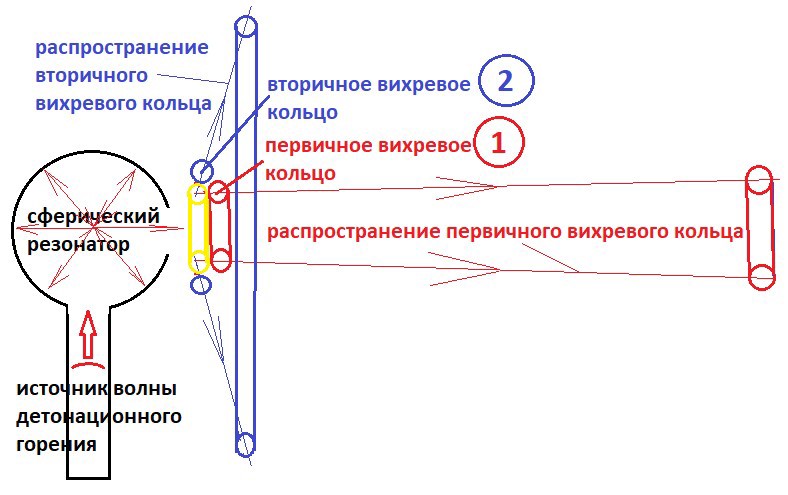 Рис. № 11. Сферические детонационно-резонаторные источники формирования пары вихревых колец.