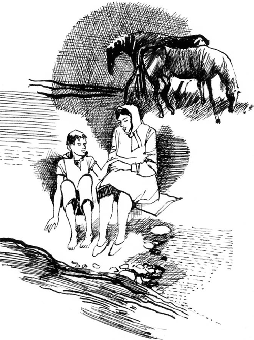 – Ох, ноженьки! Скоро ли?.. – вздыхает мать. – Окаянная дорога. Всю-то жизнь по ней майся!.. Ты ботинки-то не потерял?