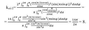 Вычислим значения коэффициентов пересчета для двух реальных антенн с высотой подвеса над землей h=λ/2, полуволнового симметричного вибратора и волнового симметричного вибратора.