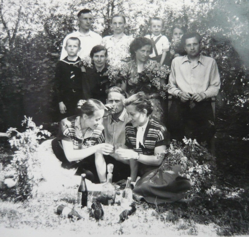 Один раз мы, все дети, вместе с мамой, ездили на поезде в Вересочь, в гости к нашей прабабушке Татьяне. Она жила вместе с какой-то бабушкой, которую приютила у себя, так как у той не было своего жилья. Было видно, что между собой они не очень ладили, у каждой были свои продукты и каждая готовила себе отдельно. Это была мать деда Карпа, маминого отца. Ее мужа, моего прадеда Йосыпа, зарубили в лесу, когда дед Карпо был еще совсем маленьким. Прапрадед Мусий пожалел ее молодость, оставил Карпа у себя, а ее выдал замуж в село Вересочь, где у нее образовалась новая семья и была дочь Мария, которая уже была замужем и жила отдельно. Вот к этой прабабушке мы и приехали в гости. Прабабушка испекла нам пирог с вишнями, которые в изобилии росли у нее в саду. Я впервые в жизни попробовал пирог и увидел, как его пекут. Мама пироги не пекла, только пирожки. Пирог был очень вкусным. На следующий день мама с Аллой и Таликом куда-то ходили, а я оставался с бабушками. Вечером мы уехали домой. Как потом выяснилось, это мы ездили крестить Аллу и Талика. Но тогда все это держалось в строжайшем секрете, так как мама была учительницей, и за это ее могли уволить с работы. Прабабушка Татьяна была самой долгожительницей из всех моих предков, по моим подсчетам, может не совсем верным, она прожила 96 лет.
