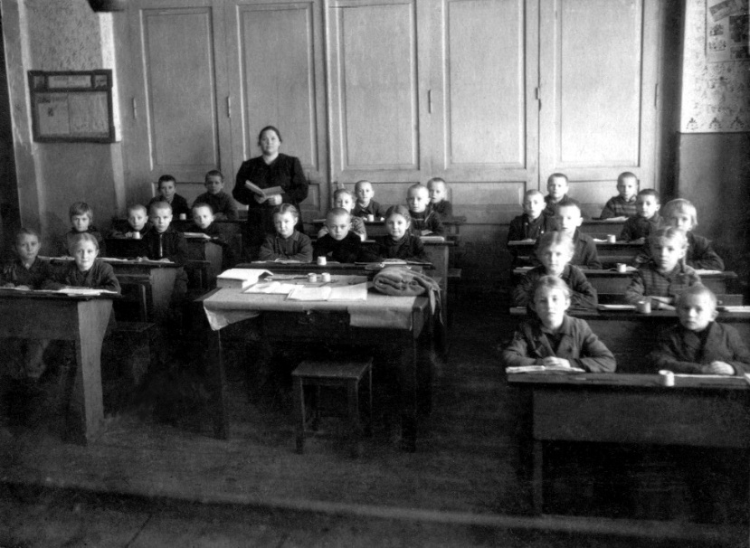 Мне исполнилось семь лет, и отец отвел меня в школу. Она находилась в километре от дома, возле церкви, тогда еще действующей. Всех мальчиков посадили за парты вместе с девочками. В первый день учительница Галина Петровна всех опросила: кто, что умеет. Самым умным оказался Володя Свиридонов. Он умел считать до ста непрерывно, а не как я, по десяткам. Правда не умел складывать и вычитать. Но я был восхищен его знаниями. Вместе со мной в одном классе учились мои старые знакомые: Петя Осипенко, Володя Ювко, Коля Ювко, по кличке Грек, и Оля Василенко, жители нашей и ближайших улиц. Коля Грек получил свою кличку за то, что однажды, в нашем присутствии, попросил бабушку сварить ему грецкую кашу, а не гречневую. Так и стал Греком.