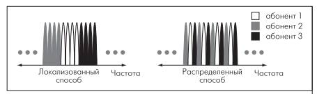 Рис. 22. Способы распределения поднесущих в SC-FDMA