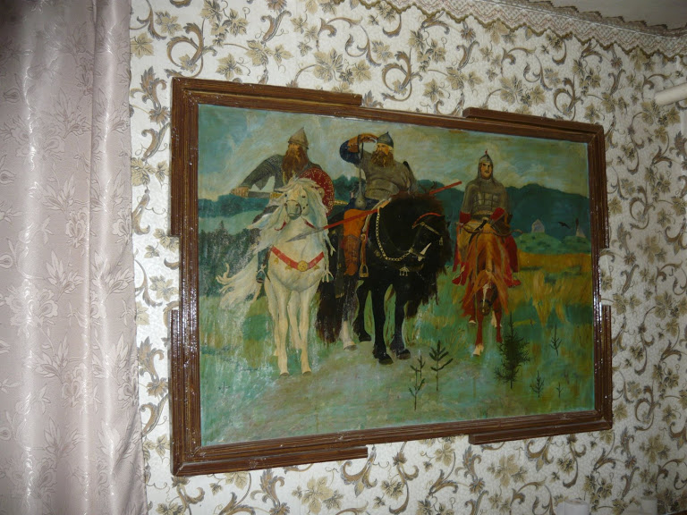 Были у меня в то время еще три увлечения: рисование, музыка и вырезание лобзиком изделий из фанеры. Рисунок с натуры у меня получался плохо, а вот копии картин с репродукций, с большим увеличением, у меня получались хорошо. Попытка рисовать маслом с первого раза не удалась. Краска впитывалась в холст, не желая засыхать на поверхности холста. В Вертиевке в то время жили три художника, и я обратился у ним за консультацией. Оказалось, что прежде чем рисовать на холсте или фанере, их нужно грунтовать раствором столярного клея с добавлением мела. Дело пошло. Сначала я нарисовал две небольшие картины на фанере, одну из них сдал на конкурс в школу, а затем подарил учительнице химии Евдокии Петровне, с которой я дружил. Потом был лес Шишкина с медведями, уже на холсте и большого формата. Для того, чтобы ее рисовать сделал мольберт в виде складной треноги, на которую и ставились картины. Следующей картиной были «Три богатыря» Васнецова, размером 1×1,5 м. Позже эту картину у меня выпросил дядя Миша, и я ее ему подарил, а себе нарисовал другую. Кстати, рамы для своих картин я также делал сам, причем не из готового багета, а из обычной доски.