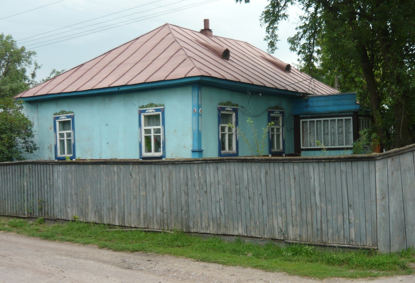 На фото видны и забор, и наличники на окнах и углах дома. Нет только голубей, которые сидели на фронтоне веранды на дубовых ветках.