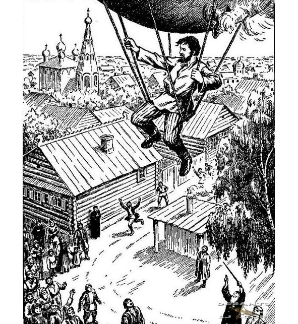 И все же в тяжелые, смутные петровские времена, когда новшества да войны оскудили Русь, не переводились на русской земле фантазеры и умельцы. Отрешаясь от суеты мирской, строили они вещи «необычные». К примеру, крестьянин Иван Посошков изобрел «бой огненный на колесах», ставший прообразом современного танка, а ряжский кузнец Черная Гроза – «летаник». Он свил крылья из проволоки, обклеил их перьями. На ногах закрепил что-то вроде птичьего хвоста и даже на голову надел шапку из длинных лебединых перьев. Кузнец совершил почти успешный полет, «летел так, мало дело ни высоко, ни низко, устал и спустился на кровлю церкви, но поп крылья сжег, а его едва не проклял».