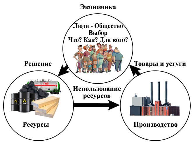 Люди принимают решения и используют имеющиеся ресурсы для производства товаров и услуг, которые им необходимы в жизни.